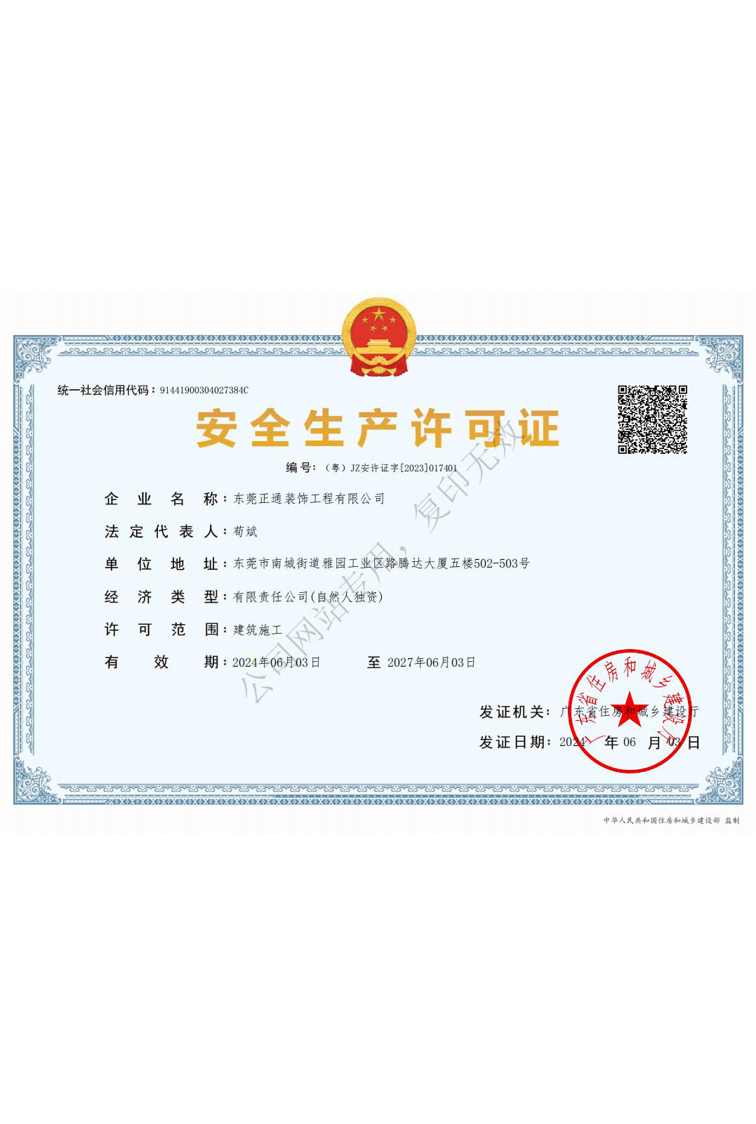 企业安全生产许可证