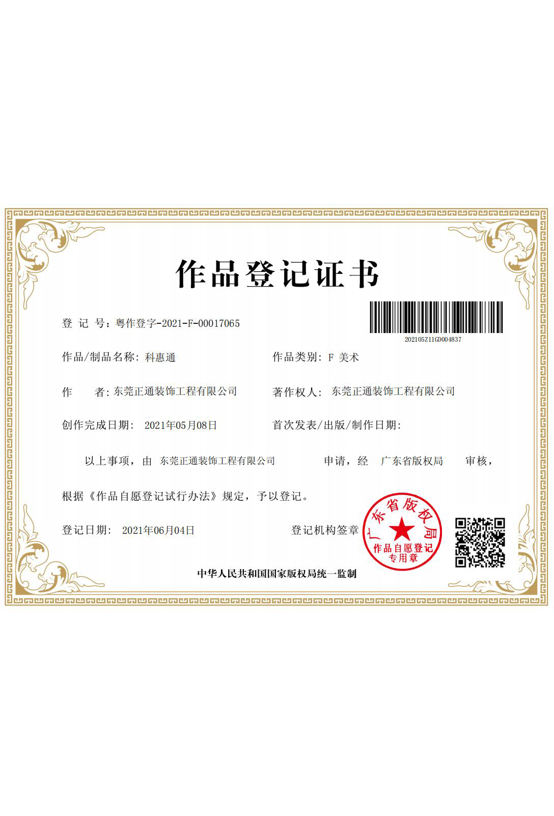 作品登记证书